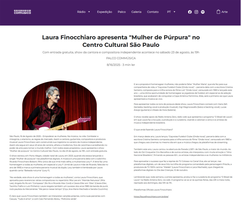 LF apresenta Mulher de Púrpura no CC-SP – Comusica